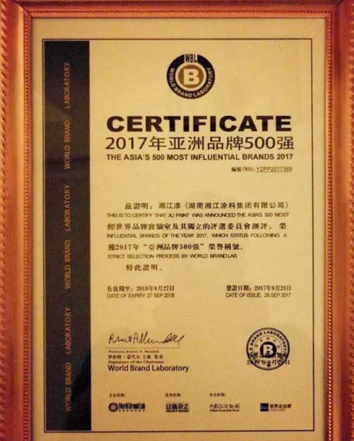 湘江涂料——中國(guó)一家進(jìn)入亞洲品牌500強(qiáng)的涂料企業(yè)